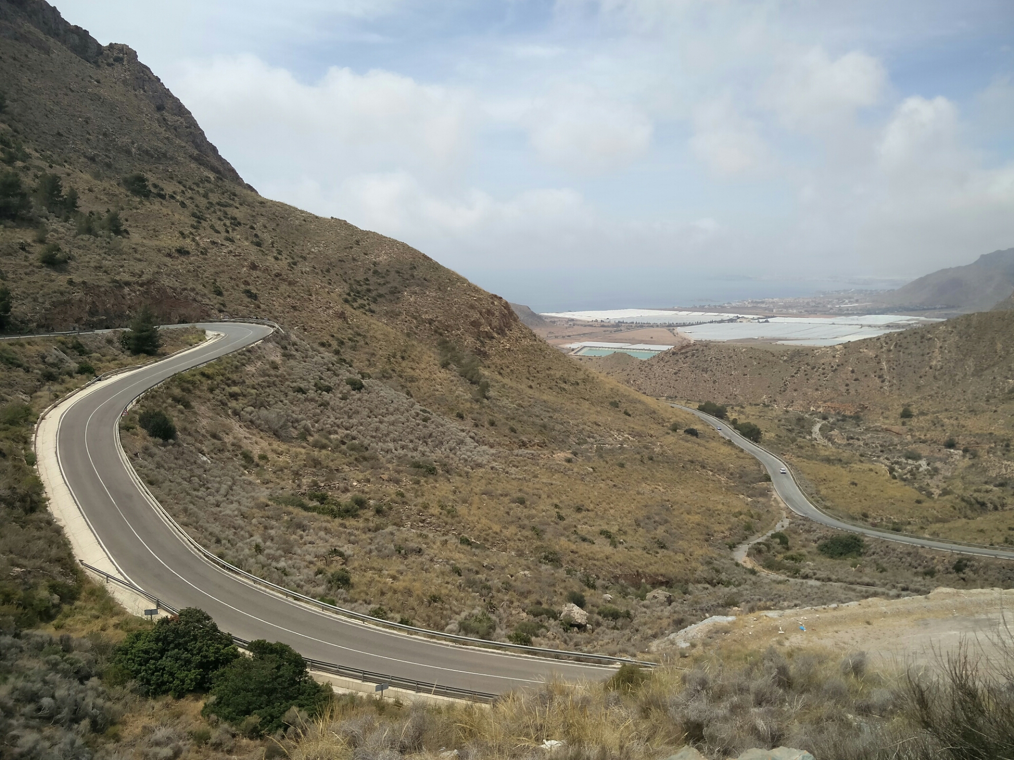 I took my time today, made coffee and read my book, cared for the bike. The pool opened at 11, so I went for a swim. The dive center emailed, and I’m confirmed for snorkeling tomorrow, but I noticed that my one-piece is see-through in places and my two-piece is really stretched out. Time for a replacement. There’s a Decathlon store in Cartagena, so off I went, via wonderful roads!