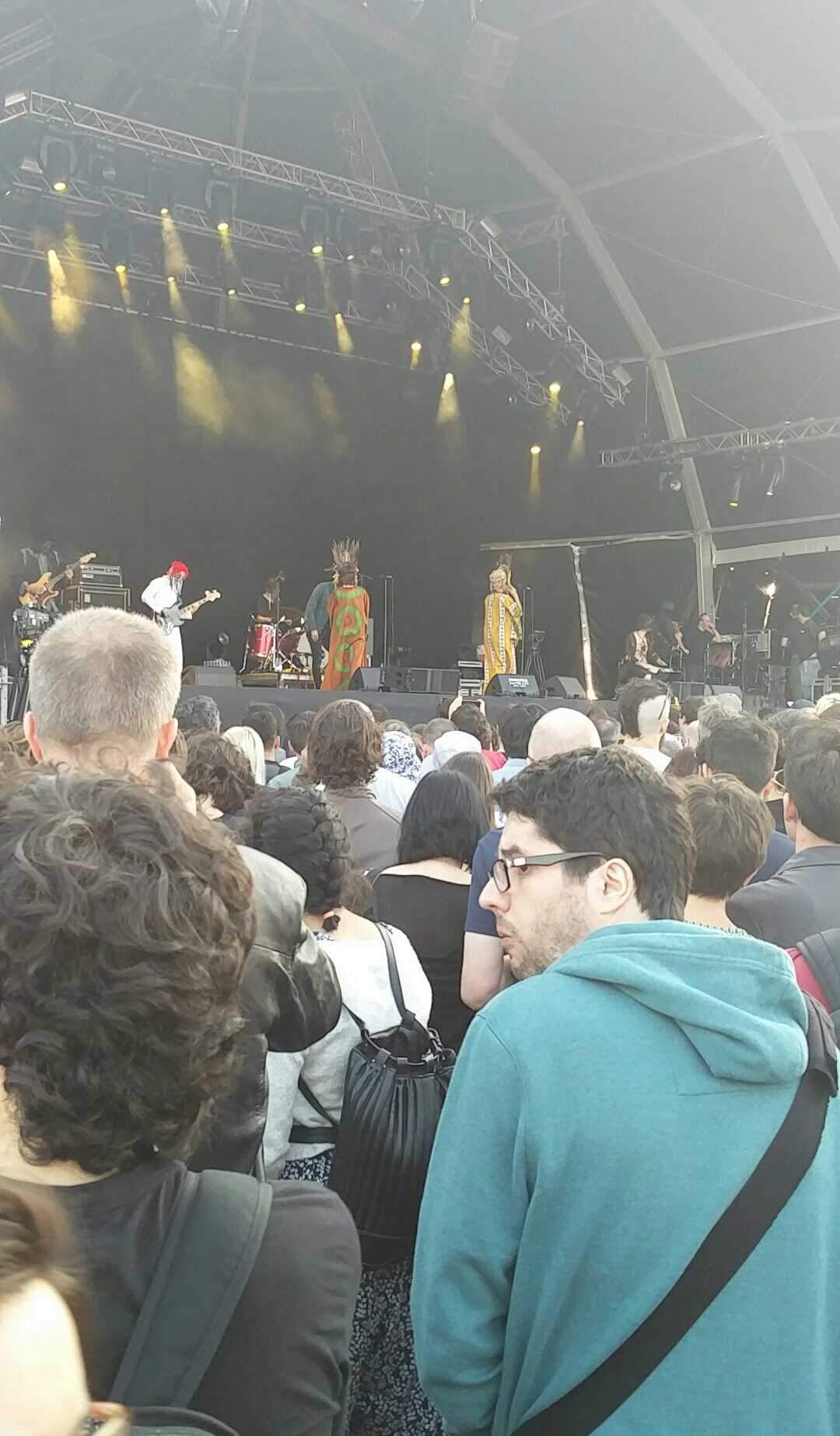 I really wanted to like Quarto Negro, who are from Brazil but spent some time in the Pacific Northwest and are on SubPop. They were at the same stage as Mahmet, so we waited there for them. Unfortunately, I don’t think an outdoor space with seating at an angle was good for them. I think they need a small club atmosphere, or at least people near the stage. The music seemed ok, but… we just weren’t that interested. So after a few songs, we left for…