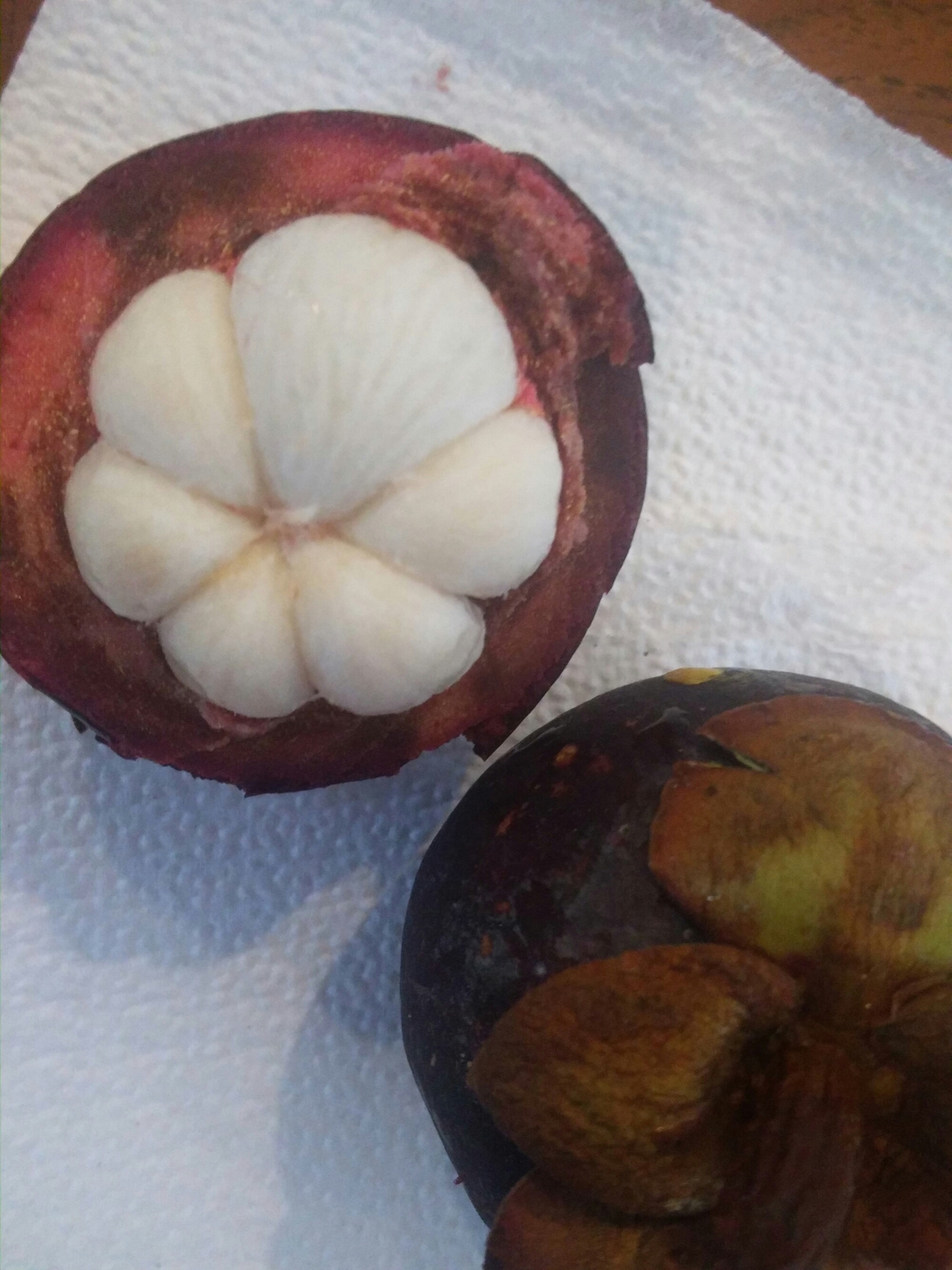 Last night, I managed to score some mangosteens at the Chiang Mai Gate market (one end of the Saturday walking street market). I didn’t think this was mangosteen season, and I definitely missed it last year, so I am super happy. We ate them with our breakfast.