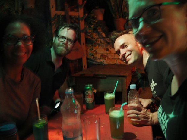 We finished the night with lime sodas and dinner at a mediocre restaurant where only my dish, a curried calamari dish, was excellent. We have become very fond of lime soda.