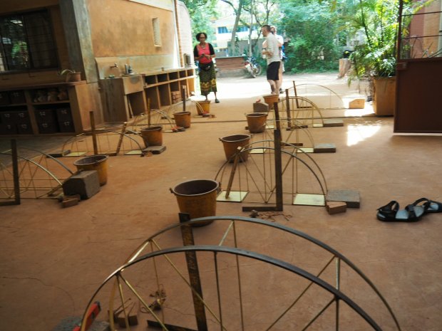 I’m sure there’s a lot more to the story. We talked to a man laboring onsite who still asked us for money for food, while agreeing that he is fed onsite. But Gopi told us that of the 2nd generation of full Aurovilians who’ve gone away (such as returning to the countries of their parents for college), 80% have returned to make their homes in Auroville. I could see the appeal. They are researching and engineering new techniques for a sustainable community. Part of the science campus: