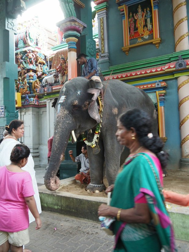 There’s a small temple onsite, and offerings were being made (and an elephant, of course)