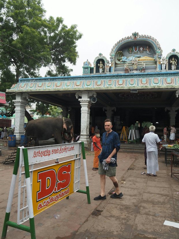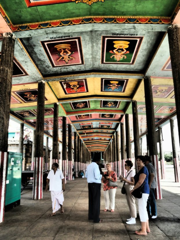 Our first stop was the temple to the dancing Shiva in Chidambaram. Interestingly, this had not been on our original route plan, as Derek’s guidebook had not suggested it. Two different travel agents we had spoken to at various points had suggested it simply as a must, and they were right. It was a lovely temple.