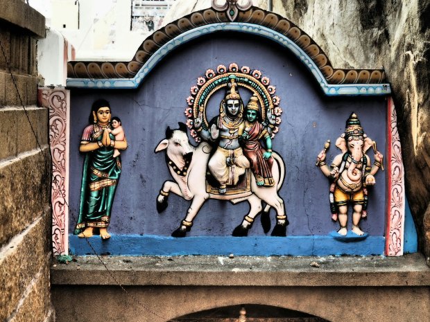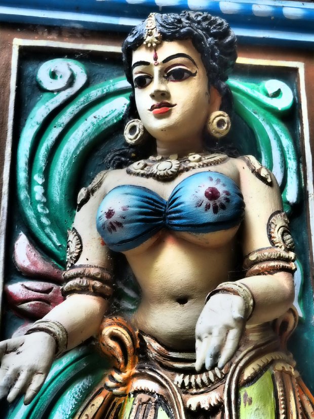 The friezes and sculptures in and around the temples tell stories, and I realize more and more often that I know some of them. It’s been years since I read the Bhagavad Gita or any other classic of India history, religion or myth, but one of my yoga teachers tells tales at the beginning of his classes, and sometimes I see them in the artwork. I would share this one, but I’m missing some of the key details, so I’m embarrassed and won’t. Maybe I’ll come back and edit this post when I find out. Then again, maybe I won’t.