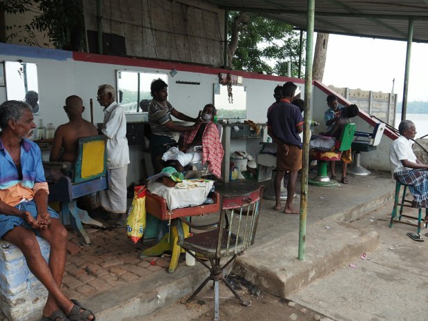 Off to one side, there were barbers cutting hair and shaving faces. One was kind enough to unnecessarily turn his client around for a picture (yes, I asked first).