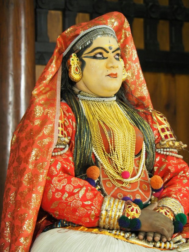 Then we met up with Abbie and Derek at the cultural center to see a performance of Kathakali dance. It was amazing. First they explained the makeup, then did a demonstration of how eye and tiny facial muscle movements express detailed emotions.
